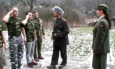 Gangbang for a hot brunette hungry for sex and steamy cum in a