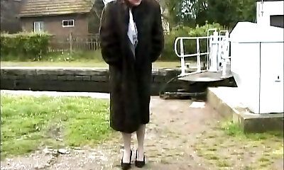 Babe flashing firm milk cans trim pussy retro nylon on picnic