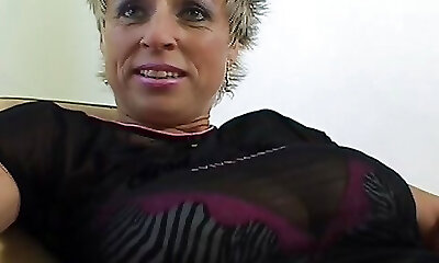 An old German woman in stockings adores getting her tight holes dildoed