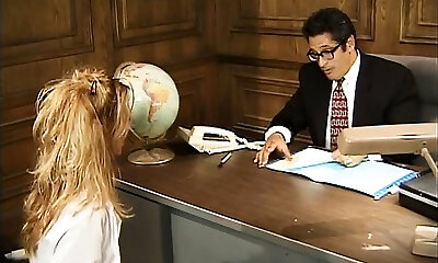 Perverted headmaster caning his teenager pupil